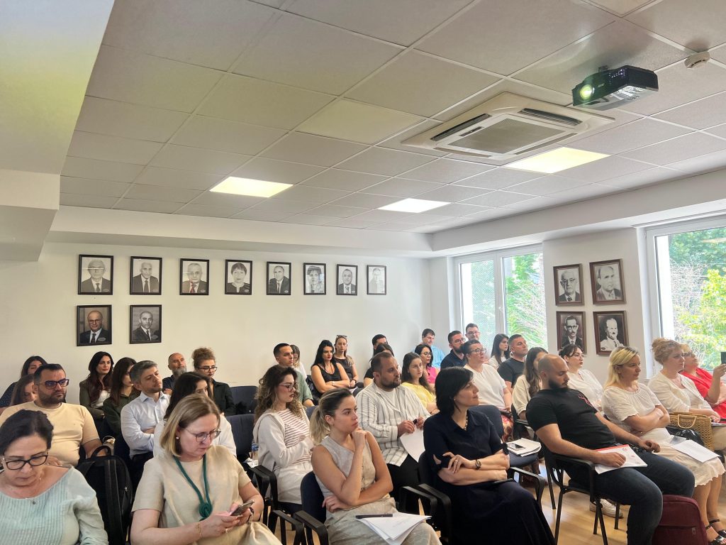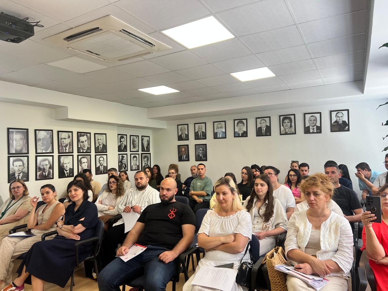 Nën drejtimin e Prof. Asoc. Dr. Enkeleda Olldashi, grupi i punës Prof. Dr. Evis Alimehmeti dhe Doc. Klesta Hysi prezantuan gjetjet e një pyetësori me studentë me temën “Ndërgjegjësimi për të kaluarën komuniste dhe drejtësia tranzitore”.