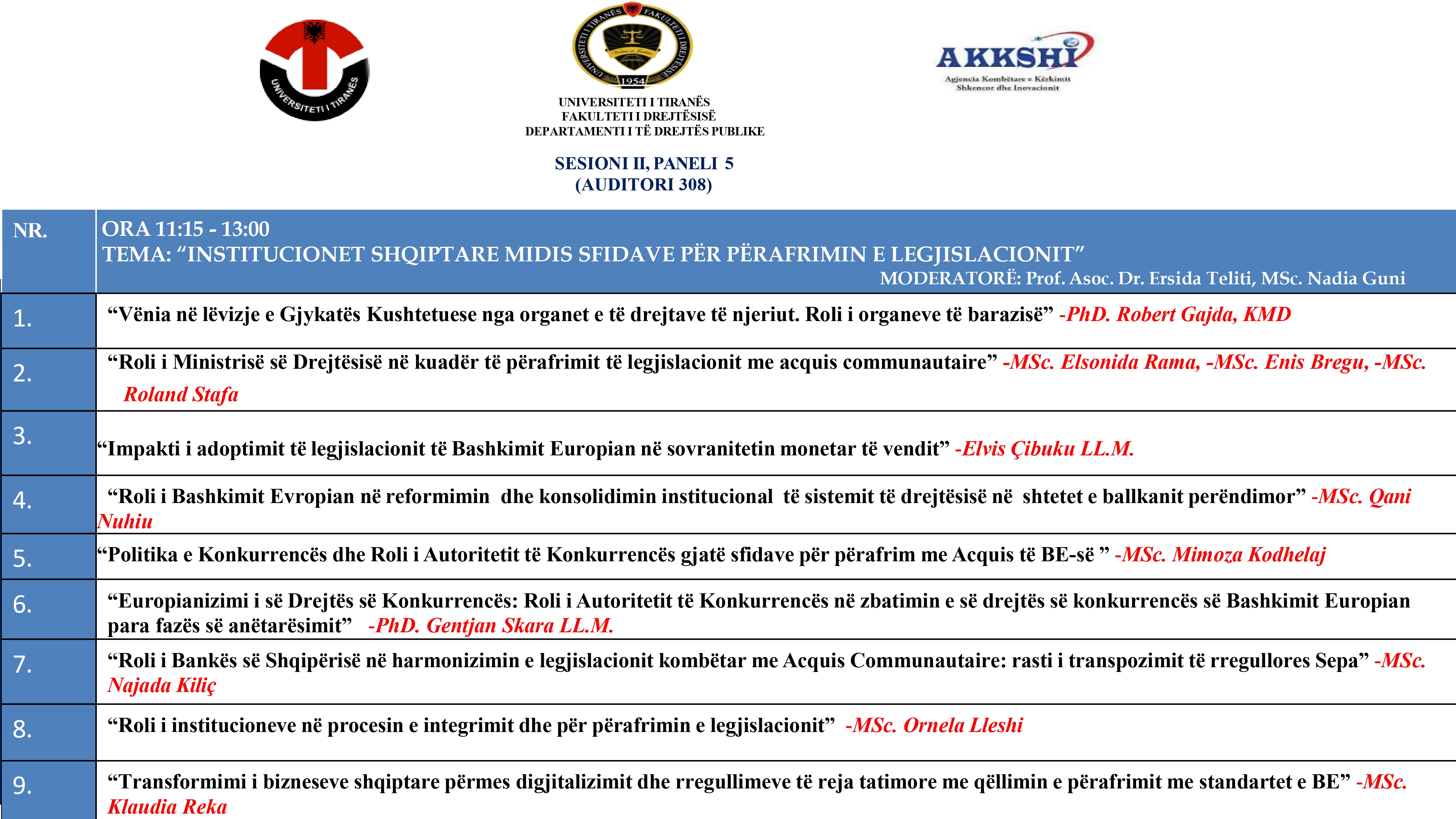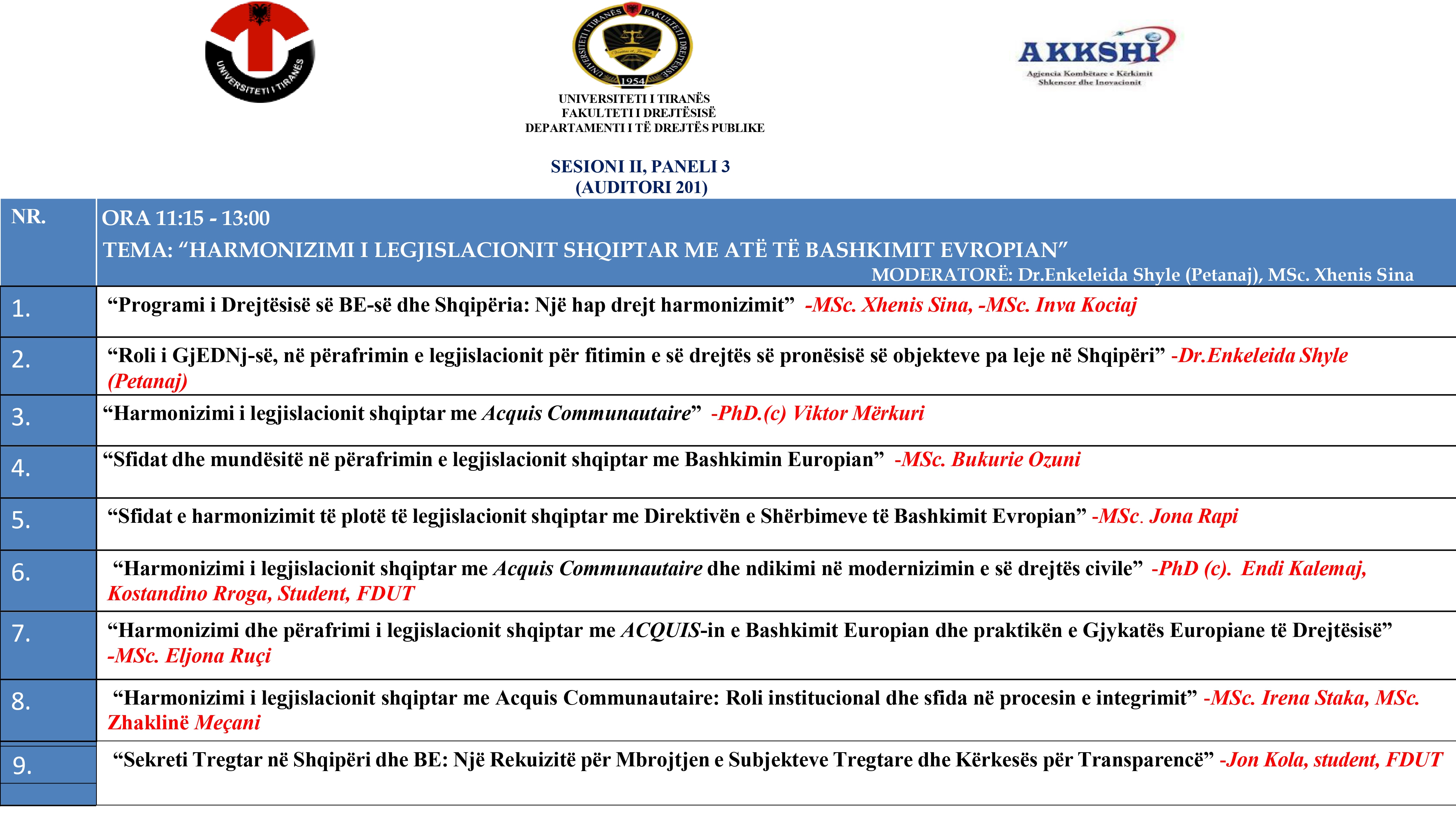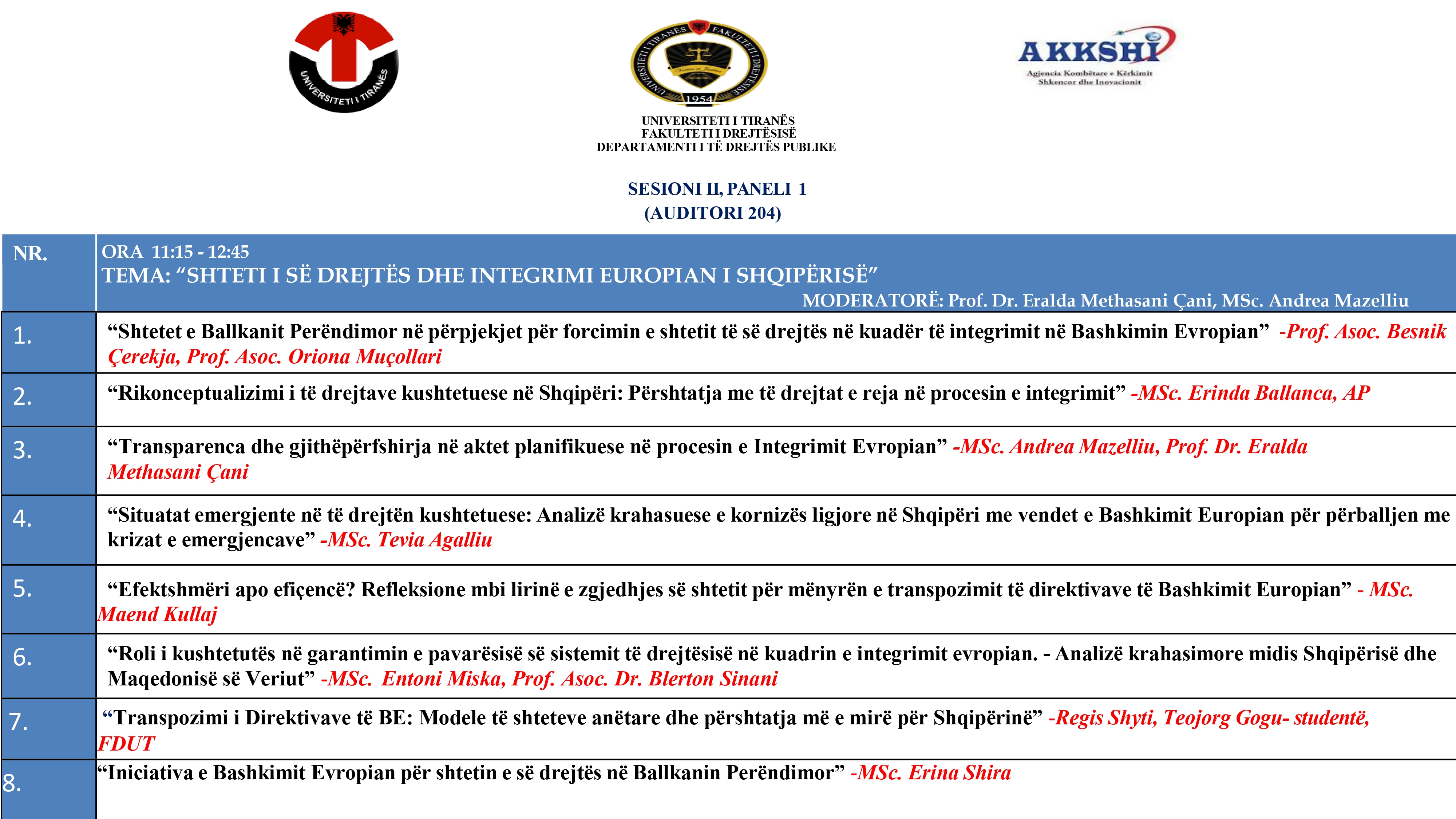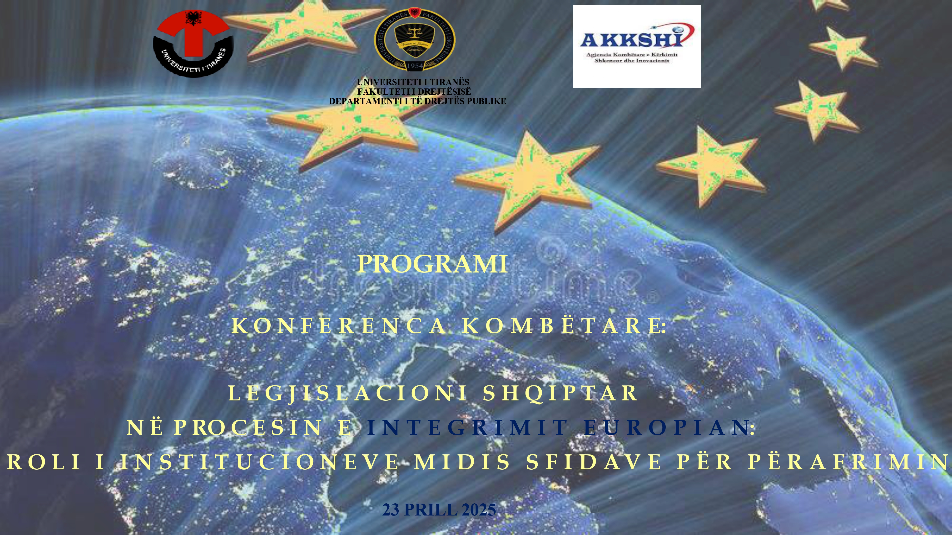 Fakulteti i Drejtësisë, Universiteti i Tiranës, organizon më 23 Prill 2025 Konferencën Shkencore Kombëtare: “Legjislacioni shqiptar në procesin e Integrimit Europian: Roli i institucioneve midis sfidave për përafrimin”.