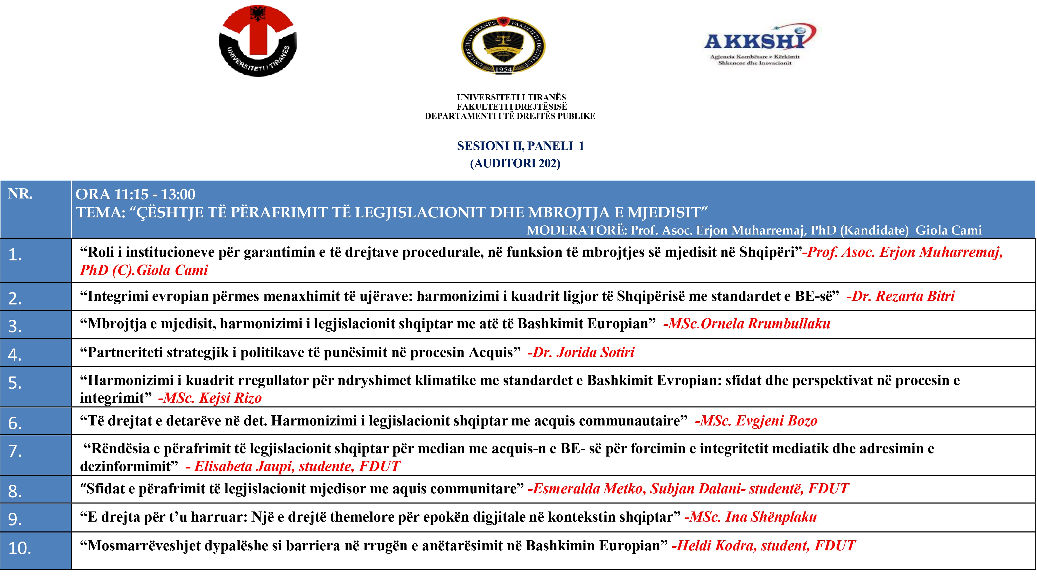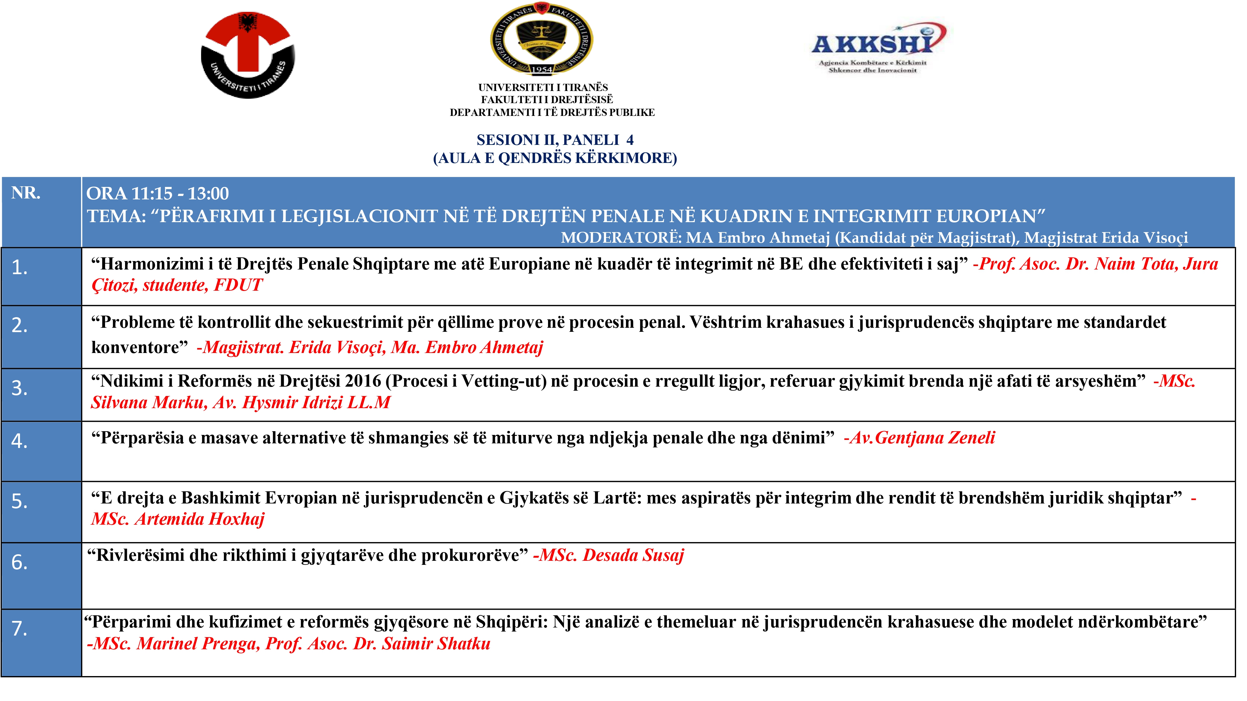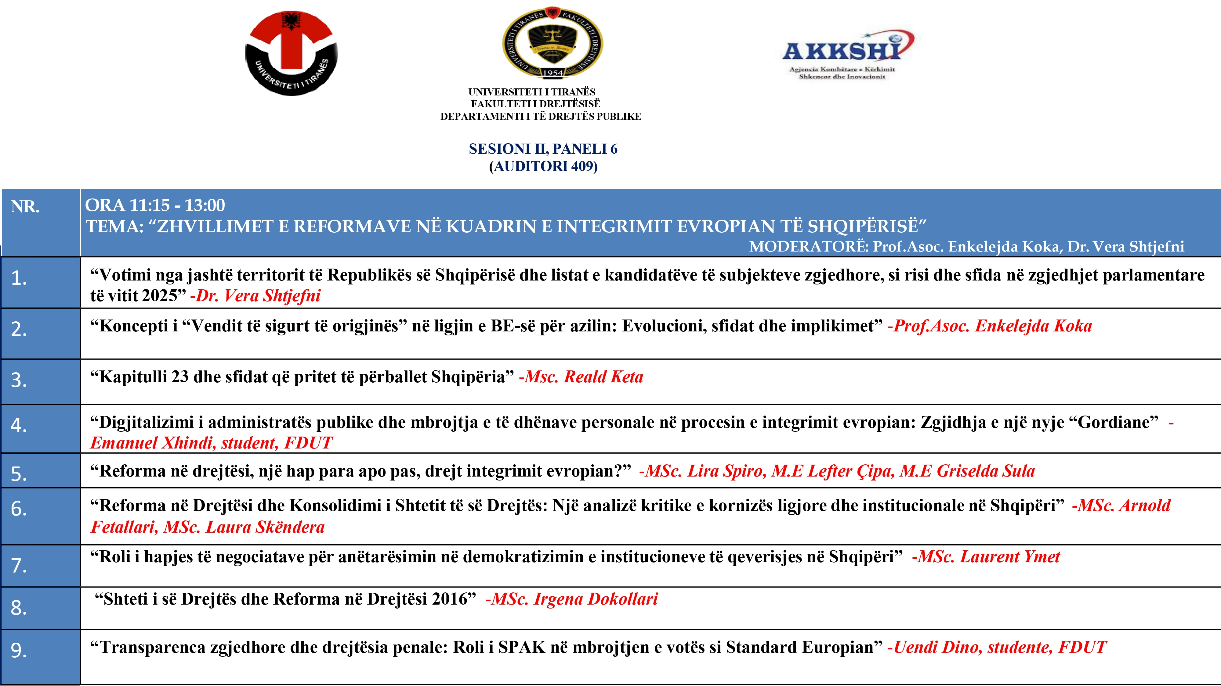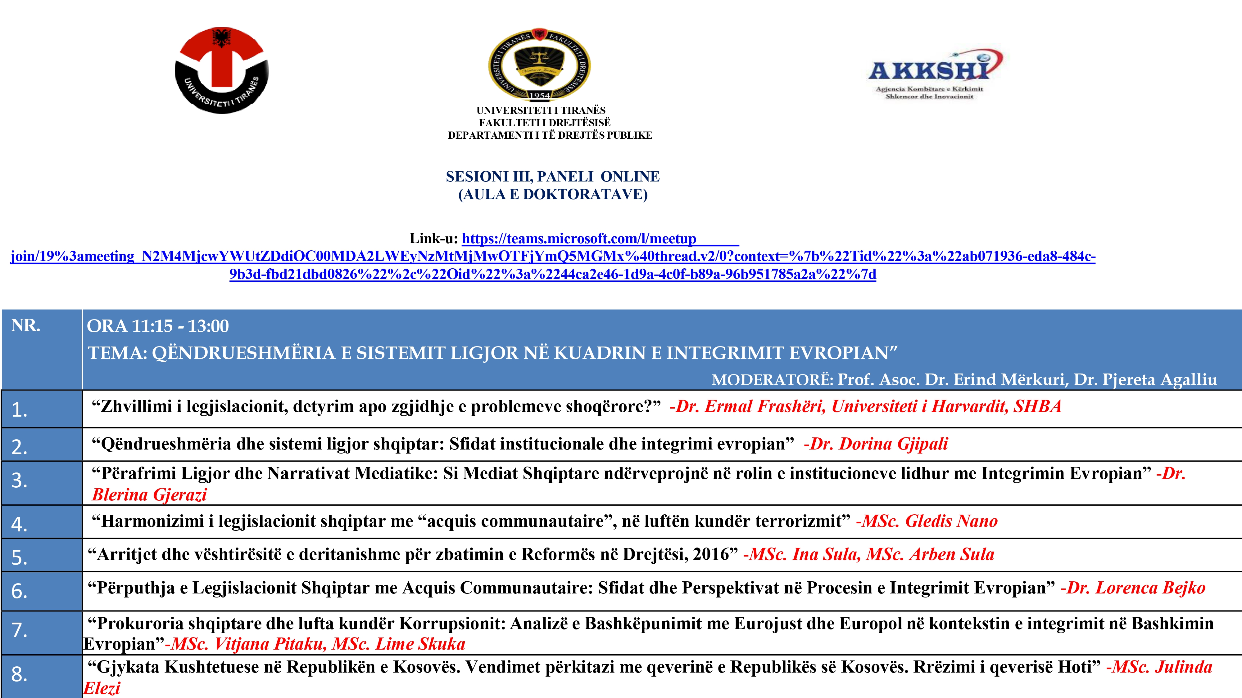 Fakulteti i Drejtësisë, Universiteti i Tiranës, organizon më 23 Prill 2025 Konferencën Shkencore Kombëtare: “Legjislacioni shqiptar në procesin e Integrimit Europian: Roli i institucioneve midis sfidave për përafrimin”.