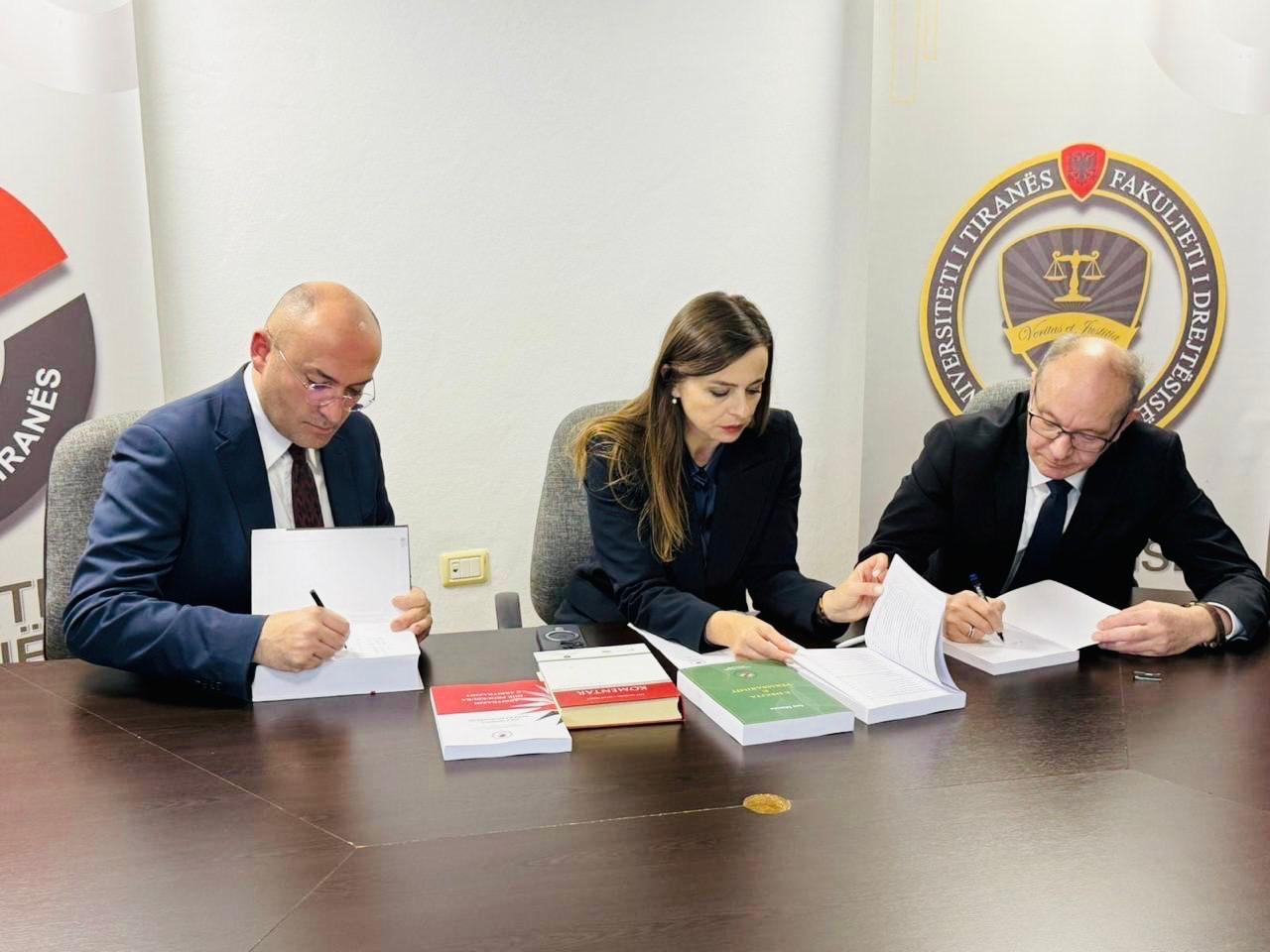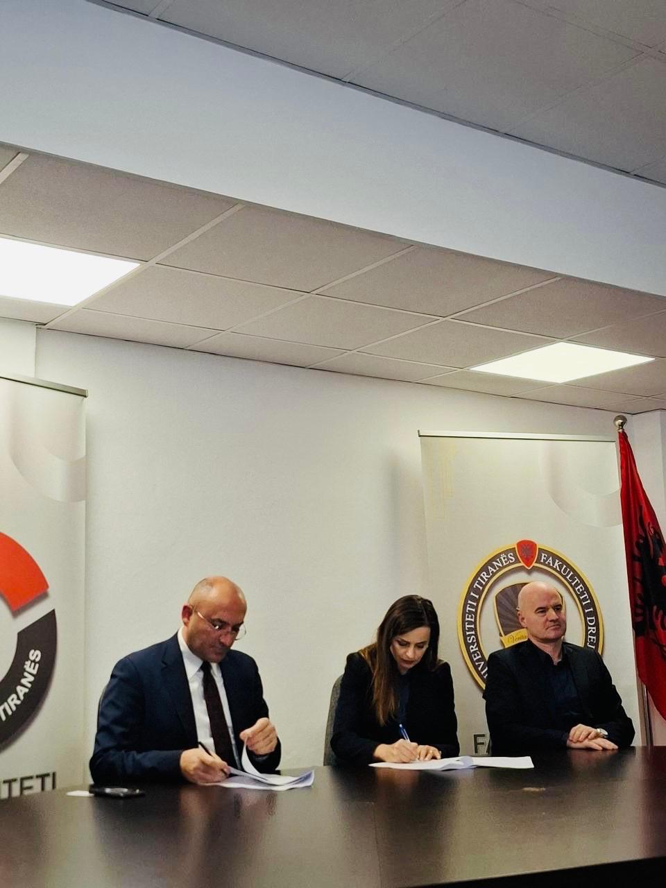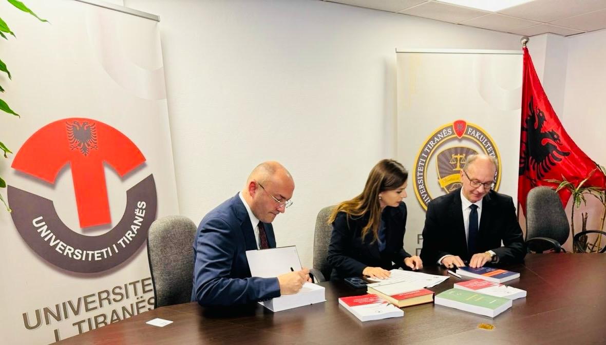Më datë 10.11.2025, në ambientet e Fakultetit të Drejtësisë të Universitetit të Tiranës u zhvillua ceremonia zyrtare e nënshkrimit të Memorandumit të Bashkëpunimit ndërmjet Fakultetit të Drejtësisë të Universitetit të Tiranës dhe Fakultetit Juridik të Universitetit të Prishtinës. Dokumenti u firmos nga Prof. Dr. Dorina Hoxha, Dekane e Fakultetit të Drejtësisë UT, dhe Prof. Avni Puka, PhD, Dekan i Fakultetit Juridik UP, duke formalizuar kështu një partneritet strategjik të orientuar drejt forcimit të kapaciteteve akademike dhe kërkimore të të dy institucioneve.