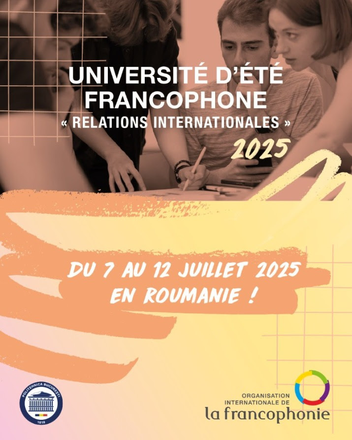 The Organisation Internationale de la Francophonie (OIF), in partnership with POLITEHNICA of Bucharest, invites students from Central and Eastern Europe to participate in the Francophone Summer University “International Relations” 2025. Registrations are open until April 25, 2025.